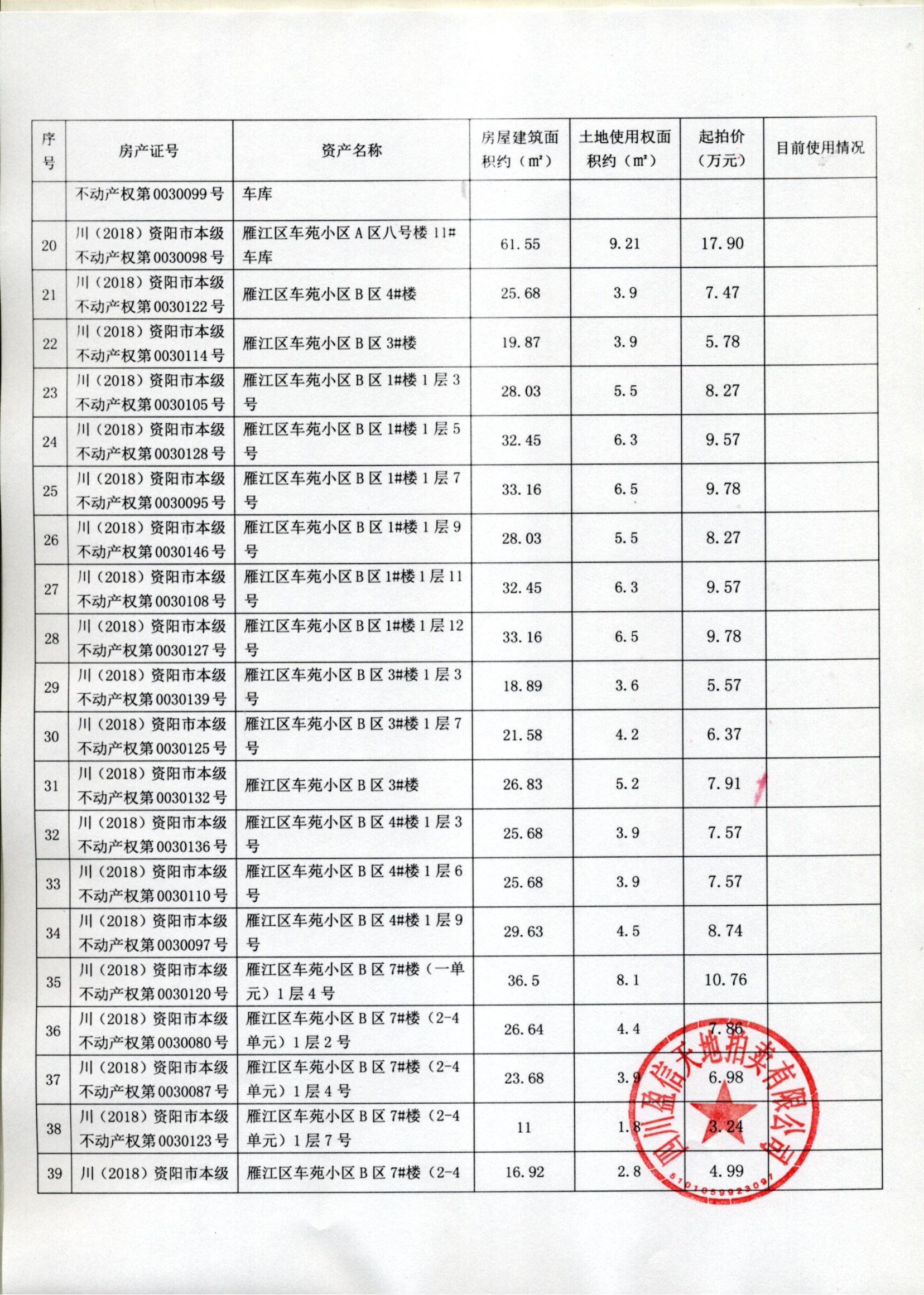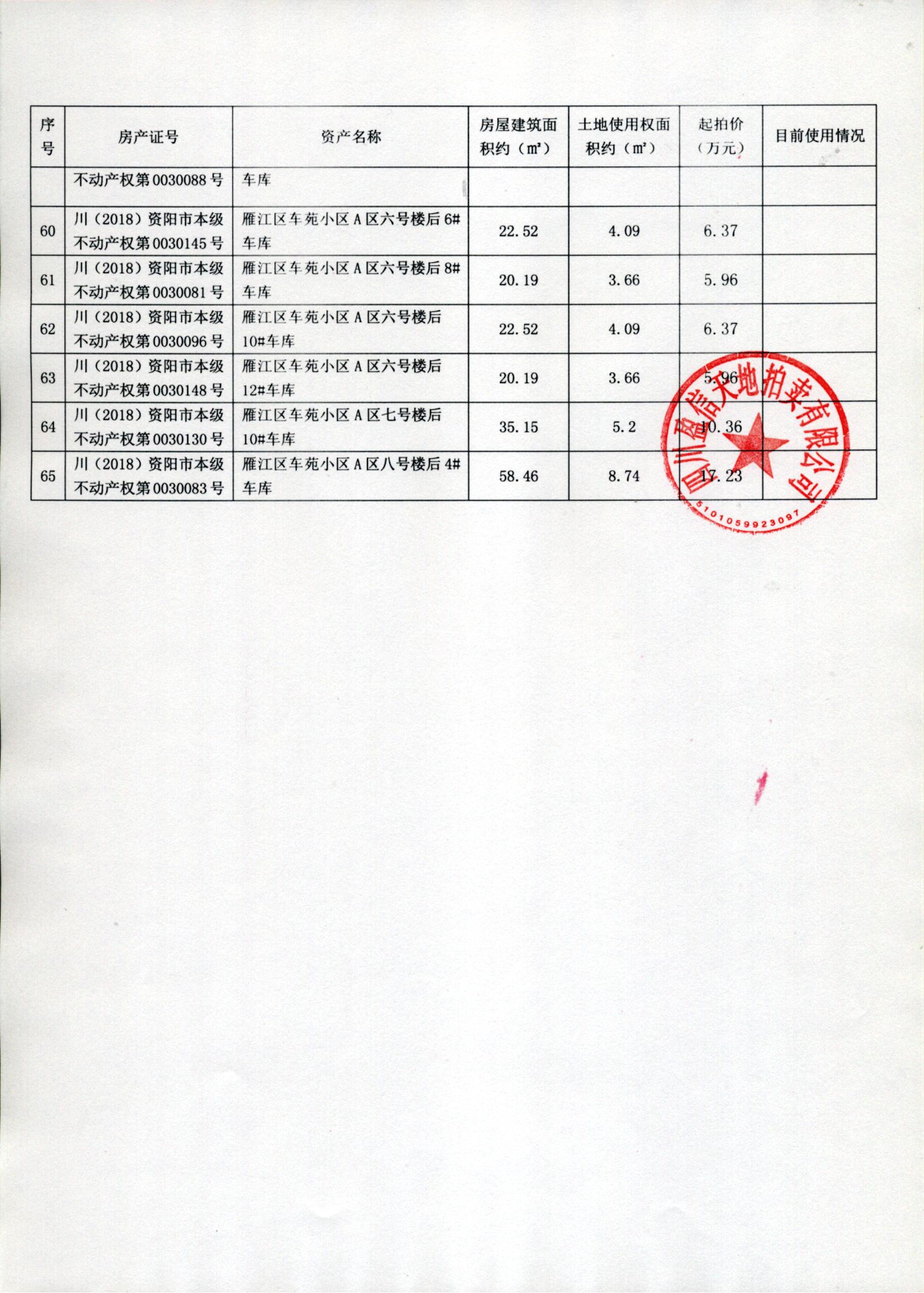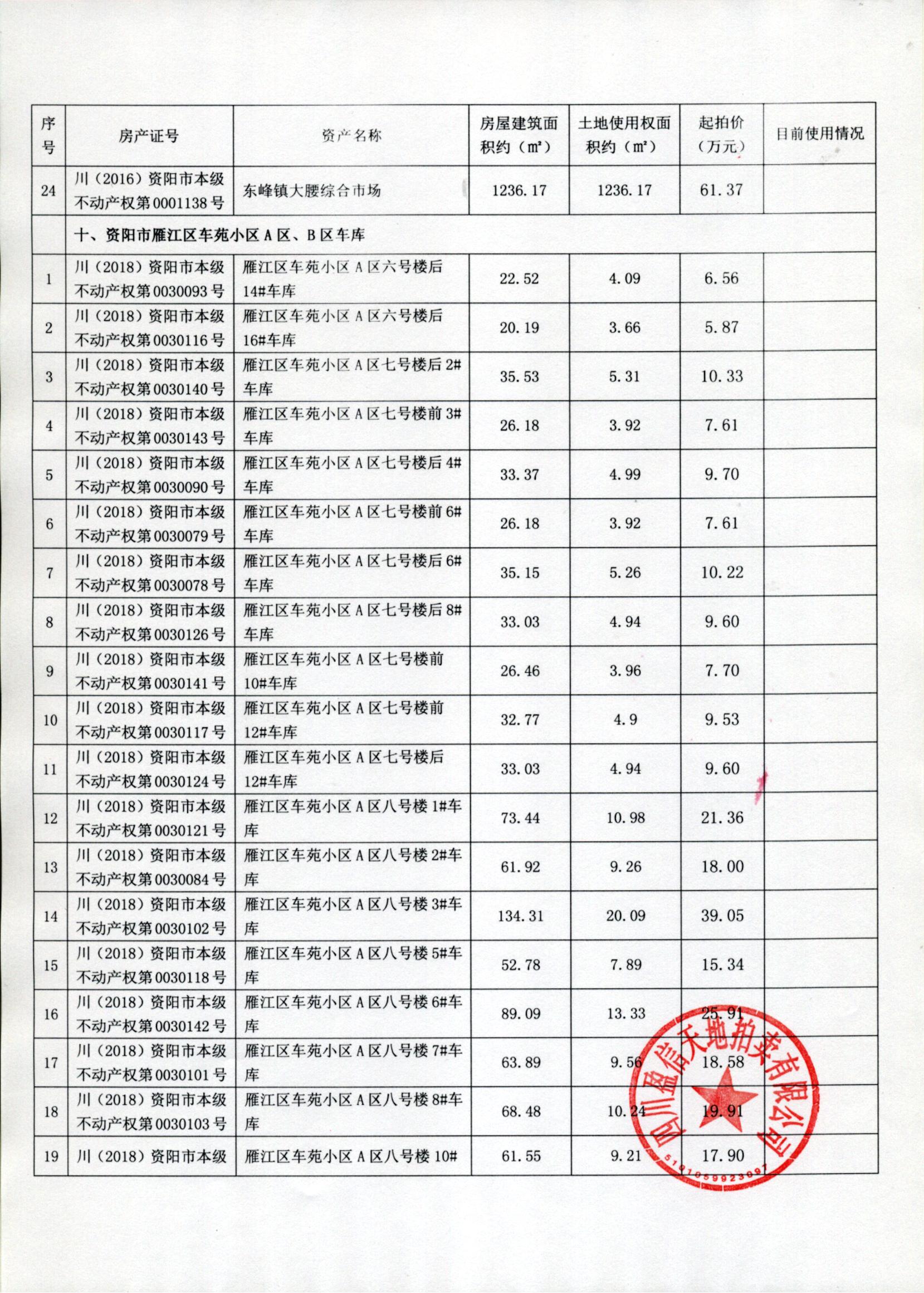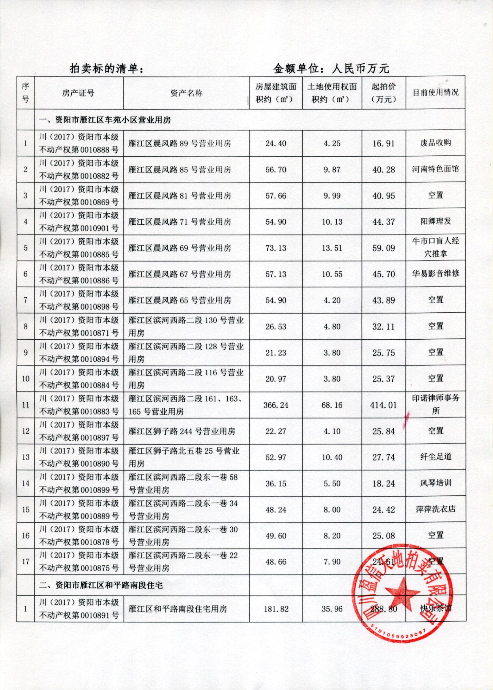 二、競買資格:標(biāo)的一至標(biāo)的九中的各標(biāo)的:中華人民共和國境內(nèi)外的法人、自然人和其他組織除法律另有規(guī)定外均可申請參加競買;標(biāo)的十的各標(biāo)的:僅限資陽市雁江區(qū)車苑小區(qū)的業(yè)主本人(單位)競買。