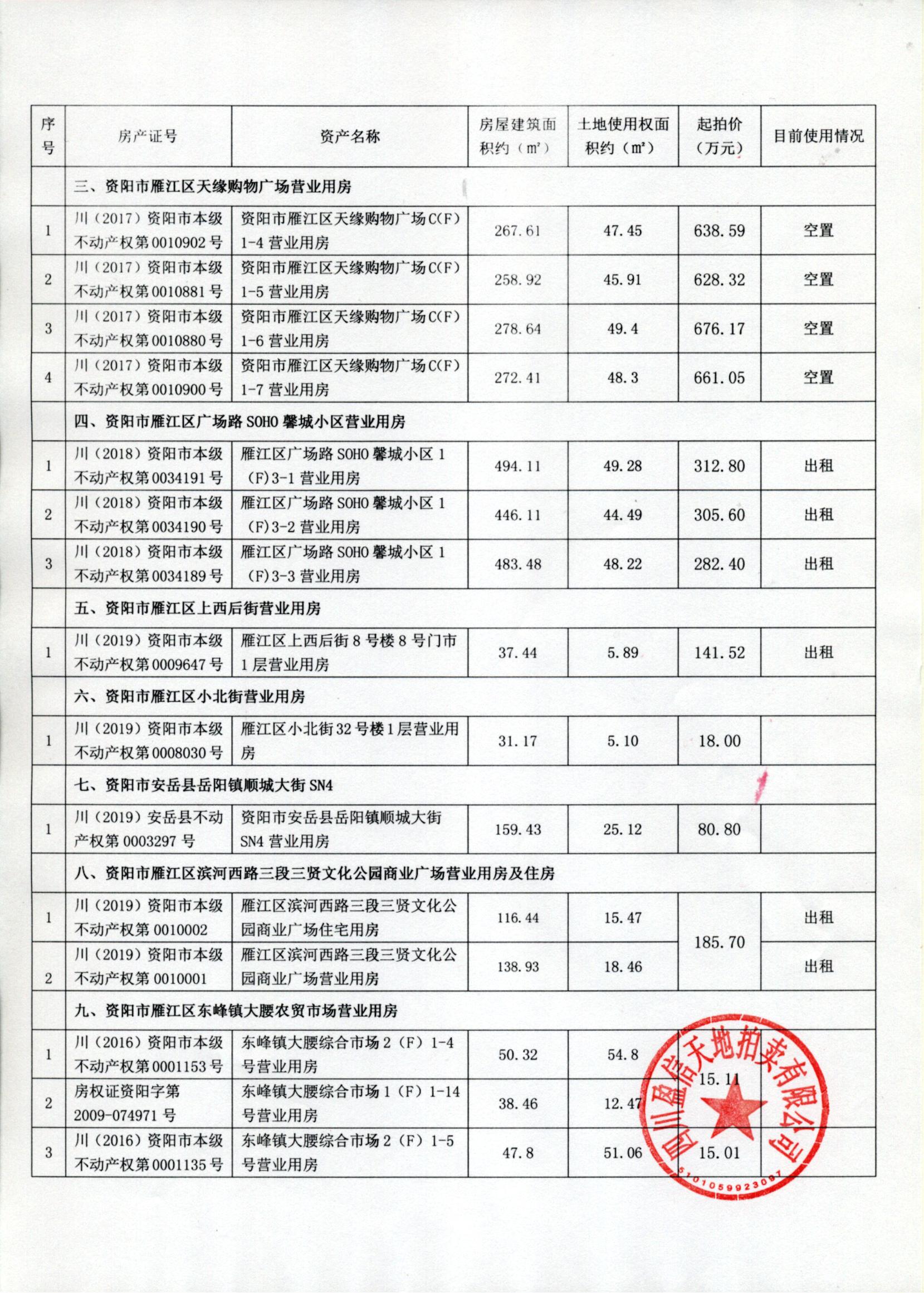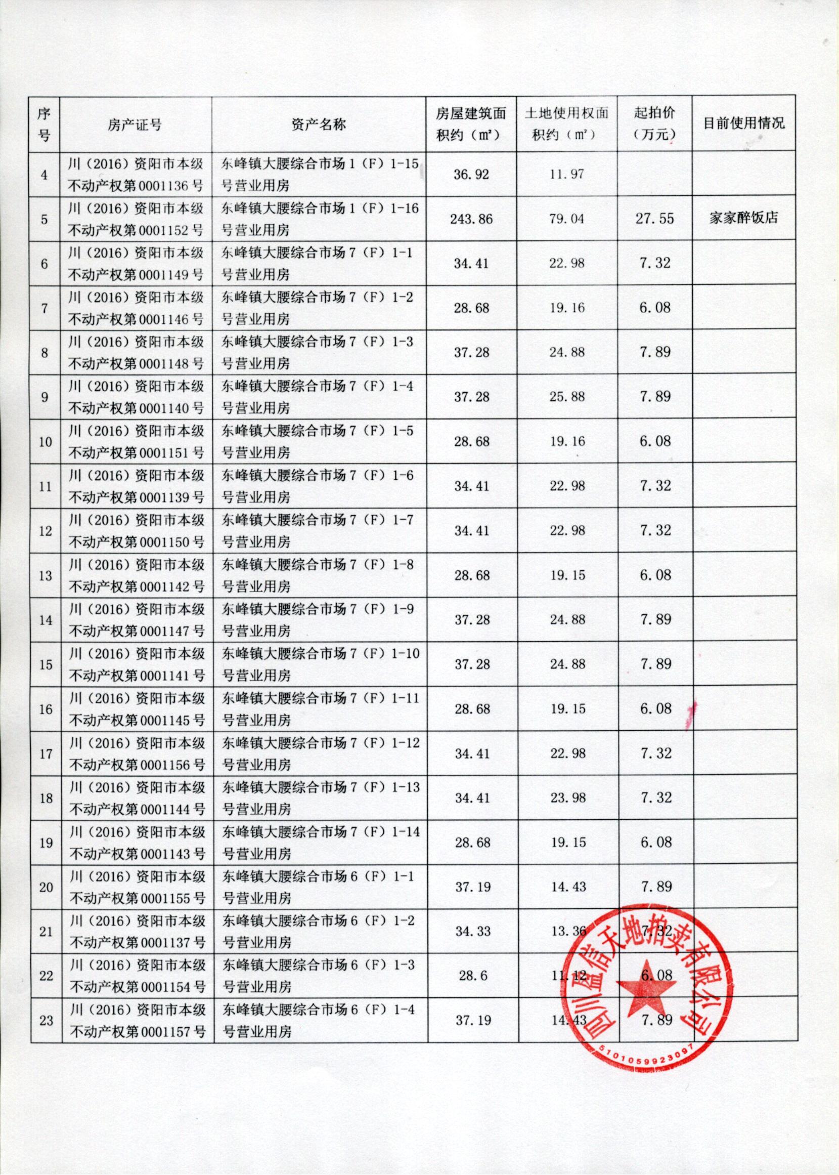 注:拍賣標(biāo)的清單詳見本公司拍賣網(wǎng)站(www.myyx.cn),拍賣標(biāo)的清單中列明標(biāo)的權(quán)證號、位置、面積、起拍價等,請在網(wǎng)上下載。