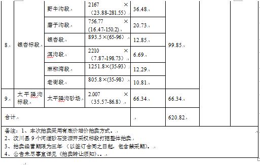 汶川縣河道砂石資源開(kāi)采權(quán)拍賣(mài)公告