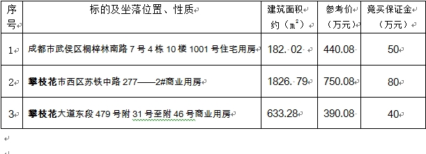 成都、攀枝花房產(chǎn)拍賣會
