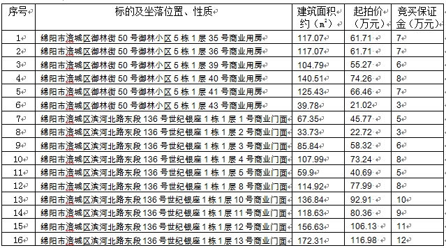 綿陽三臺縣農商銀行-16處房產拍賣會
