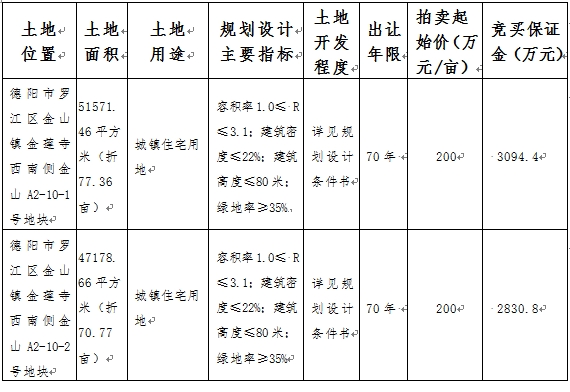 經(jīng)四川省德陽市羅江區(qū)人民政府批準(zhǔn),德陽市羅江區(qū)自然資源和規(guī)劃局決定以拍賣方式出讓以下9宗地塊的國有建設(shè)用地使用權(quán),交易組織由德陽市羅江區(qū)政府政務(wù)服務(wù)和公共資源交易服務(wù)中心實施。現(xiàn)將有關(guān)事項公告如下:
